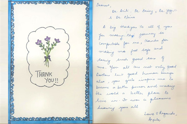 We had high risk pregnancy so we consulted Dr. Arti & Dr. Yogita both. I would like to thanks all the doctors and staff for their constant support, love, care and kindness towards me.